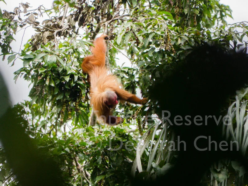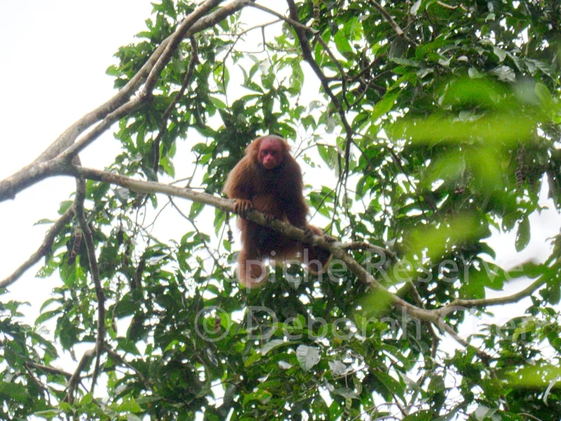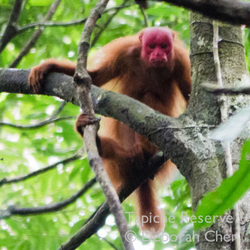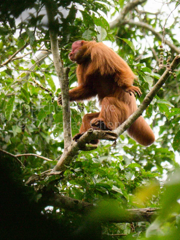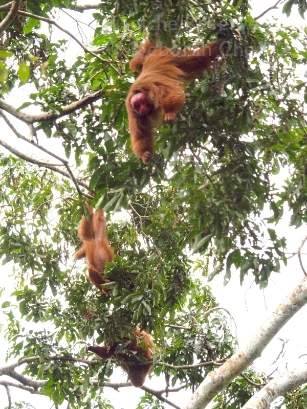 The incredible athleticism and expressive faces of the red uakari monkey (Cacajao calvus) at the Tapiche Reserve always make for a thrilling viewing. We enjoy multiple family groups of this rare species in healthy numbers (100+) roaming the reserve on both sides of the Tapiche River. Very little is formally documented about these monkeys in the wild, and we have witnessed behaviors that we have not found in any existing literature. Human destruction of the region's forest has concentrated them on our reserve, which is currently the only active conservation project along the Tapiche River.